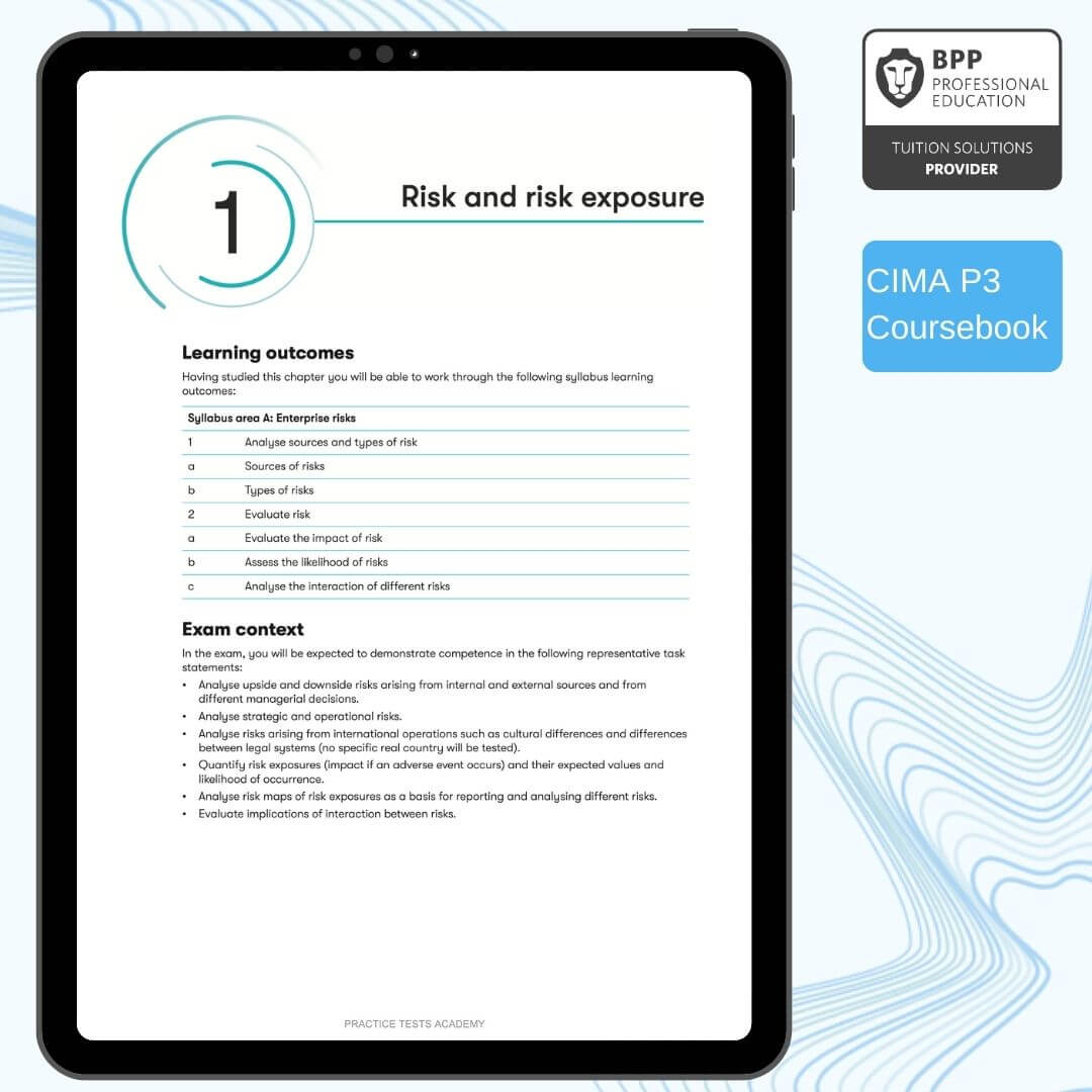 Get the official CIMA P3 BPP Risk Management ebooks (Coursebook, exam practice kit,) with PTA discounts now!